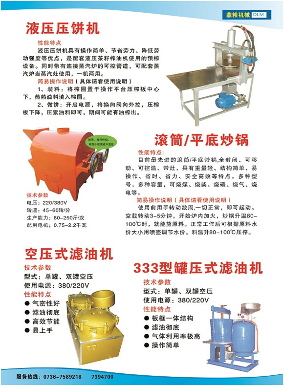 針對(duì)小型榨油廠等用戶,適合冷榨、熱榨等菜籽油和花生油等毛油的澄清過(guò)濾,濾出的油脂達(dá)到不起沫,少油煙,無(wú)沉淀物??蛇B續(xù)加工大量油脂。氣壓式濾油機(jī)是通過(guò)空氣正壓方式濾油,使毛油通過(guò)多層高密度濾油布進(jìn)行精濾,從而實(shí)現(xiàn)毛油的油、渣分離,過(guò)濾后的油質(zhì)更加清澈。精濾后可過(guò)濾出油渣里的大量殘油,過(guò)濾后的油渣為干餅狀,油餅的帶油率極低,從而提高了出油率。